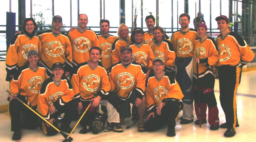 The two teams combined in 2000 and kept the Inflatable Party Sheep name. The Sheep went 4-1 in the regular season and took second place to Jimmy's NE but we lost our first playoff game to Dusty's in the A level playoffs. We entered the C level MN state tournament and placed 3rd. We lost to the Kamakazies 2-6 in the semi final game and they went ahead to beat Babes in the championship. The Sheep also traveled to Colorado Springs for the first time to compete in the Make-A-Wish tournament. They lost 2-4 in overtime in the championship game to team Shack.