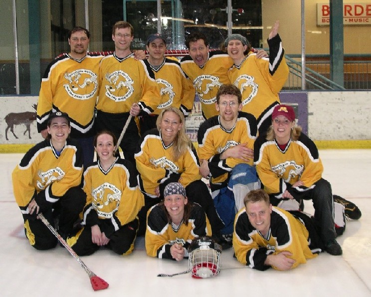 2006: Can you believe we've been playing as the Sheep for over 10 years! This was the year the Sheep convinced the Mpls park board to have a small 6 on 6 coed league that wasn't on Sunday. Terminal Frost, Meerkats, Gatti Inc, SIECO, JJ's and BLS all joined. The Sheep lost the final to Terminal Frost. Winter Carnival was cancelled because of warm weather. The Sheep won the B level state tournament defeating Terminal Frost, Meerkats and DAC along the way.